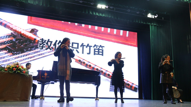 陈冉老师详细介绍了竹笛的结构,分为笛塞、吹孔、孔膜、笛膜、按指孔、上下出音孔、笛头、扎线和镶头,之后展示了曲翔先生的《走进快活岭》,这首曲子积极向上,富有活力。寓意是要直面困难因为后面是心旷神怡,也是一种积极的生活态度。还有竹笛名曲《阿诗玛叙事诗》和《西域情》其中还结合了新疆鼓。随后向学生介绍了四川音乐学院的特色十孔笛。并同竹笛专业的同学提出关于竹笛吹奏换气循环等专业问题进行了指导。通过此次讲座,使我院竹笛专业的学生开阔了视野,对其专业理念的提升有很大帮助。(撰写人:姚越 )