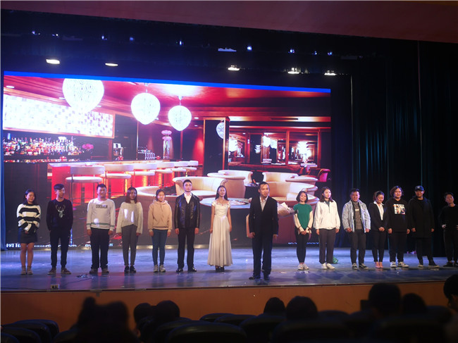 话剧演出的圆满成功是话剧社老师和同学们经过无数次排练的结果,灯光与音乐的完美配合,演员的出色表演展现了同学们的专注态度与专业技能。通过此次的演出,同学们也丰富了舞台表演经验。(撰稿人:向春花;审核人:吴洋)