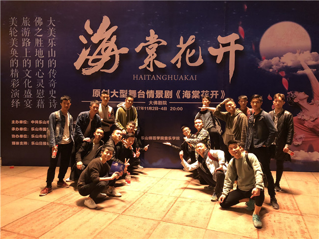 2017年11月1日晚,由中共乐山市委宣传部、乐山文化广电新闻出版局主办,乐山市国学艺术团、乐山文化发展研究中心承办的原创大型舞台情景剧《海棠花开》(预演),在乐山大佛剧院上演,我校音乐学院舞蹈专业全体学生,前去观摩学习。