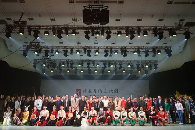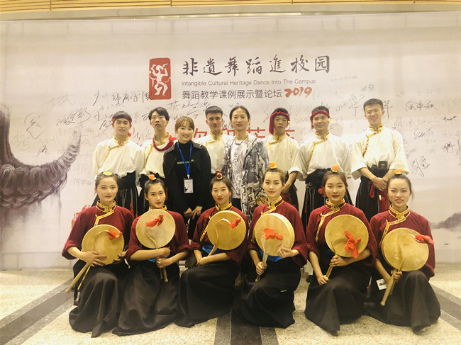 我校音乐学院舞蹈精品课程《点上舞》(热巴)应邀参加了此次展演。《点上舞》是学院2019年度音乐学院重点打造的精品原创系列作品之一;特邀藏彝走廊音乐研究中心特聘教授国家一级导演扎西江措编导,音乐学院舞蹈教研室主任张景老师执导、执教完成。本次展演有12名同学参加,为该作品的呈现付出辛勤的劳动。作品不仅作为精品课程单独展示,同时还担任了开幕式的表演活动,获得业界很高的评价。