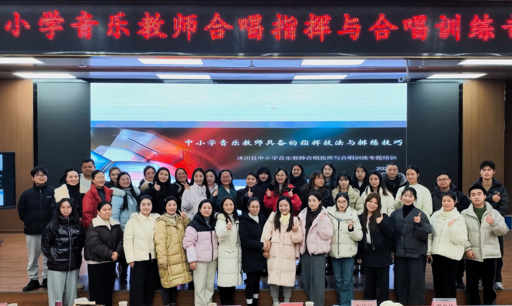 本王讯(文/图 郭元红)1月20日,音乐学院教师杨嵋受邀前往沐川县沐溪初级中学,为当地中小学音乐教师开展合唱与指挥专题培训。沐川县教育局副局长向国强、音乐教研员宋成琼以及全县中小学音乐教师共同参与此次学习活动,现场学习氛围热烈。